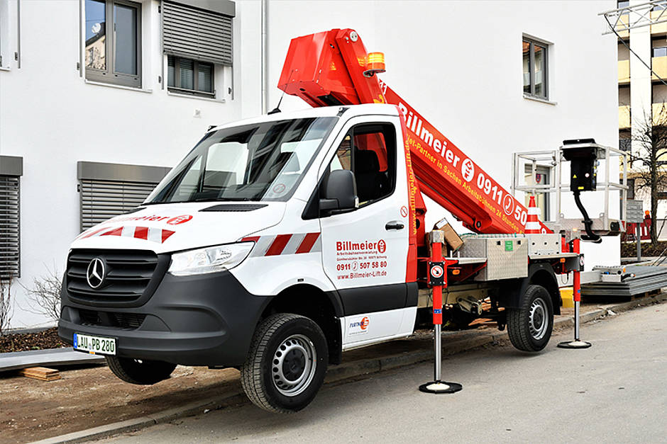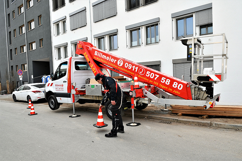 Neben der jüngst erworbenen 28-Meter-Bühne sind noch zwei weitere PALFINGER-Hubarbeitsbühnen in Billmeiers Firma vorhanden. Vor allem von jenen Kunden, die Aufträge im Innenstadt-Bereich erledigen, würden die Geräte bevorzugt. Nicole Häring, die im Unternehmen für die Disposition, Anlieferung und Abholung der Lifts zuständig ist, berichtet, dass die Geräte nach jedem Mietprozess technisch überprüft, Probe gefahren und gerade jetzt in Corona-Zeiten zusätzlich gründlich desinfiziert werden. Sollte demnächst eine weitere Lkw-Hubarbeitsbühne geordert werden, käme für den Nürnberger Vermieter erneut ein PALFINGER-Gerät in die engere Auswahl. Warum gerade PALFINGER? Billmeier erklärt: „Ich bin mit den bisherigen Modellen hochzufrieden und weiß somit aus eigener Erfahrung, dass sie sich durch Qualität, Stabilität, Zuverlässigkeit und Langlebigkeit auszeichnen. Wir haben inzwischen auch einen guten Draht zum Hersteller aufgebaut, sodass wir für die Wartung und für eventuell auftretende Fragen jederzeit kompetente Ansprechpartner haben.“