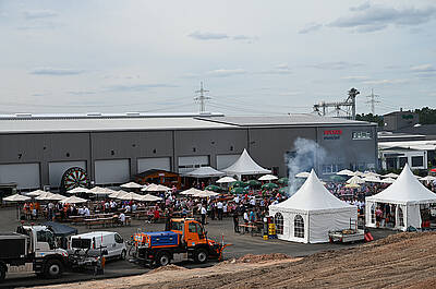 Imbissstände, Bierzeltbänke, Hüpfburg – das Event auf dem neuen Bucher Municipal-Gelände wirkt beinahe wie ein Straßenfest, wenn es nicht im Industriegebiet von Wernberg-Köblitz stattfinden würde. Auch das Wetter spielt mit, obwohl die Aussichten um das Projekt nicht immer so sonnig aussahen. „Das neue Werk hat uns einiges abverlangt“, berichtet Geschäftsführerin Victoria Rasoulkhani bei ihrer Eröffnungsrede. Die Planung sei ein Hin und Her mit ihren Vorgesetzten und dem Bauamt gewesen, erschwert durch Planungsunstimmigkeiten, Verteuerungen und die Entwicklungen in der Bauindustrie. Aber zum Schluss habe sie sich durchgesetzt. Spatenstich für die neue Anlage war im April 2023. „Und 16 Monate später sind wir hier“, schließt Rasoulkhani zufrieden. Mehr als 3.000 m2 umfasst die neue Fertigungshalle, dazu kommen 400 m2 Bürofläche.