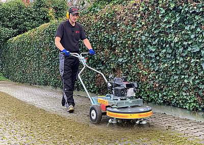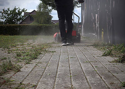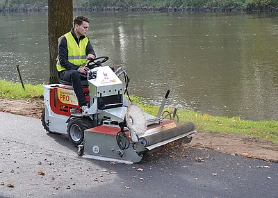 Wenn es um Ecken und Kanten geht, stoßen herkömmliche Kehrmaschinen mit einer Drehachse schnell an ihre Grenzen. Radialbesen aber fegen mit ihren speziellen Bürstenwinkeln perfekt und sogar seitenbündig aus und ersparen damit langwierige Vorarbeiten. Das Aufsitzgerät Cleanmeleon 2 PRO von Westermann punktet zusätzlich noch mit einer Null-Wendepunkt-Technologie und ist dadurch wendig sowie auch in engen Passagen nutzbar.
