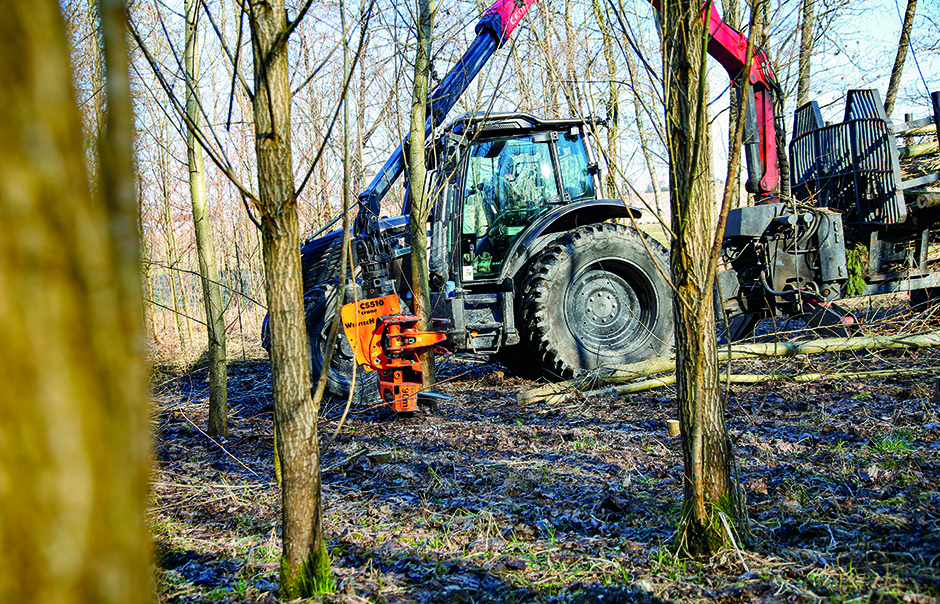 Durch die ausgeklügelte Hydrauliksteuerung ist es möglich, auch Teilstücke des Baumes stehend zu entnehmen. Daher eignet sich die Woodcracker CS510 crane – anders als andere kardanische Greifersägen – auch für den Einsatz bei Sicherheitsbaumfällungen in städtischen Gebieten oder Siedlungen.