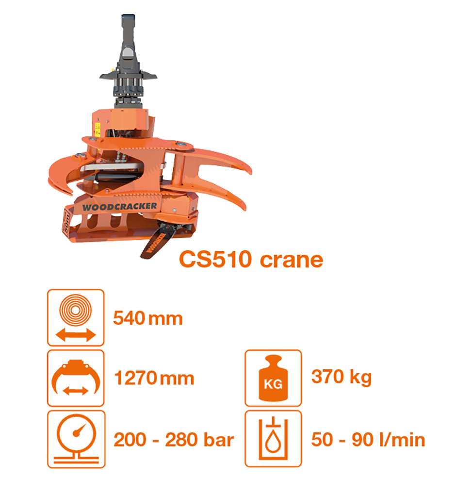 Die neue Greifersäge Woodcracker CS510 crane von WESTTECH sticht mit mehreren herausragenden Eigenschaften aus der Masse hervor. Sie hat trotz geringem Eigengewicht einen Schnittdurchmesser von bis zu 540 mm und weist eine Greiferöffnung von 1.270 mm auf. Abhängig von der Ausstattung reicht das Eigengewicht von 370 kg bis zu 500 kg.