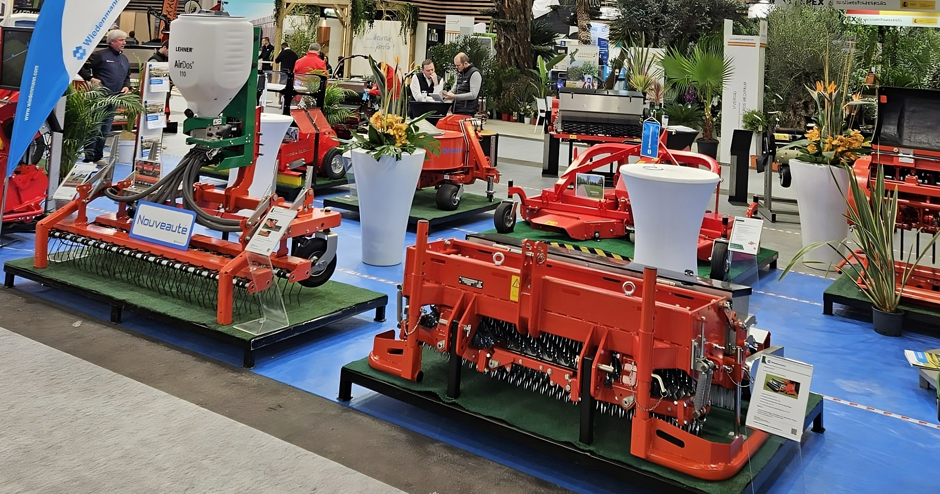 Außerdem werden auf dem Stand Maschinen zum Tiefenlüften, Igeln, Schlitzen, Bürsten sowie zum Laubblasen, Kehren und Schmutzaufnehmen, zudem Streuer und Räumschilde gezeigt.
