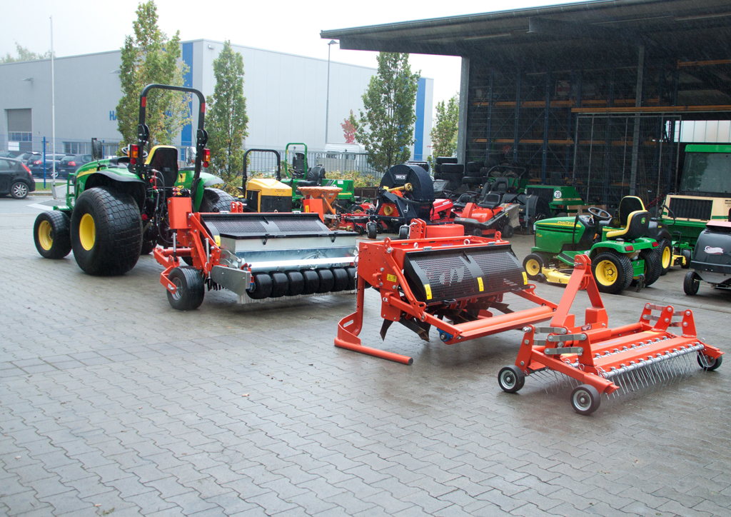 Für Thomas Mathes vom Maschinenhändler Claus & Mathes hat sich der Einstieg ins Vermietgeschäft gelohnt: Der Ratinger hat dadurch seinen Kundenstamm erweitern können. Im Kerngeschäft konzentriert sich der Händler mit Hauptfokus auf John Deere-Produkte zwar auf das klassische Verkaufsgeschäft. „Doch über die Mietgeräte erreichen wir Anwender, die bislang entweder keine professionelle Rasenpflege durchführen oder die Arbeiten selbst erledigen“, so Mathes. Deshalb hat man in 2010 zunächst eine Wiedenmann Terra Spike XD angeschafft. Anbaugeräte dieser Serie werden am universellen Heck-Dreipunkt von Kompakttraktoren ab 24 kW betrieben. Die Maschine dient zur Tiefenbelüftung und Beseitigung von Verdichtungen bis in 27 cm Tiefe. Diese Pflegemaßnahme gilt als eine der wichtigen überhaupt: Die Durchlässigkeit für Luft, Wasser und Nährstoffe wird deutlich verbessert – der regenerierte Rasen dankt es mit ansprechender Optik und erhöhter Widerstandskraft. Mehrfach im Jahr sollte die Behandlung durchgeführt werden.