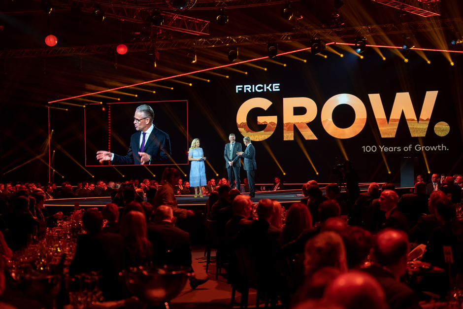 TV-Moderatorin Barbara Schöneberger führte gemeinsam mit den Geschäftsführern Hans-Peter Fricke und Holger Wachholtz sowie Kirsten Fricke durch den Abend. Mit Philipp und Adrian Fricke teilte auch die vierte Generation im Familienunternehmen ihre Vision für die Zukunft der Gruppe mit den Gästen. Interessante Einblicke in die aktuellen außen- und innerpolitischen Herausforderungen aber auch deren Chancen brachte zudem eine Keynote des ehemaligen Vizekanzlers Joschka Fischer. Diese Themen sowie die Zukunft der Branche wurden in einer anschließenden Talkrunde mit weiteren Gästen rund um Fischer diskutiert. Zu Gast waren der ehemalige deutsche Außenminister Sigmar Gabriel, Freya von Czettritz, CEO DLG Holding, Jan-Hendrik Mohr, Mitglied der Konzernleitung CLAAS Gruppe und Alexander Graf, CEO und Gründer Spryker Systems. Als abschließendes Highlight spielte zudem der internationale Star-Geiger David Garrett ein Exklusiv-Konzert vor Mitarbeitern, Geschäftspartnern, Kunden sowie Gästen aus der Politik.