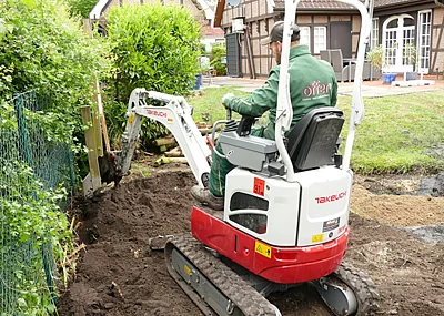 Boneß bietet die gesamte Bandbreite der Takeuchi-Maschinen für Kauf und Miete an: insgesamt 33 Modelle. Dazu gehören Kompakt-, Raupen-, Ketten-, Mobil-, Hüllkreis- und Hybridbagger, zudem Kettendumper und Laderaupen. Hinzu kommen die passenden Anbaugeräte bzw. technischen Erweiterungen wie zum Beispiel das Hydraulikkupplungssystem Taklock. Auch mit speziellen Zusatzgeräten kann Boneß helfen, z.B. mit einer Fräse für eine Takeuchi-Laderaupe. „Unsere Kundschaft ist sehr vielfältig. Deshalb ist unser Angebot an Maschinen und Geräten auch so vielfältig. Zum Kernbereich gehören die qualitativ hochwertigen Takeuchi-Bagger und -Maschinen. Unsere Kunden fragen danach“, beschreibt Christian Boneß, Geschäftsführer der Firma, die Situation. Gefragt seien zudem auch Siebbrecher, Krane oder Abbruchroboter.