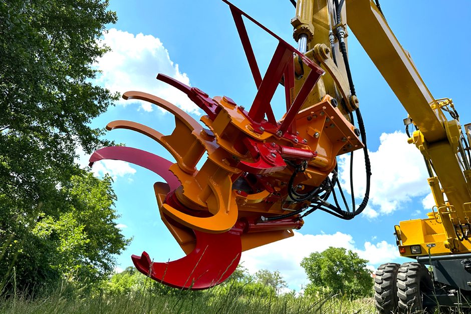 Der Schnitt-Griffy HS 800 von Hans Habbig Maschinenbau verfügt über eine neue, patentierte Greifer-Ansteuerung, wodurch das Schnittgut zur Mitte des Messers zentriert wird. Dank der offeneren Konstruktion und der Verwendung hochwertiger Materialien konnte das Gewicht um 15 Prozent zum Vorgängermodell reduziert werden. Trotzdem wird durch die Ansteuerung die Schnittleistung maximiert, und zwar um 15 Prozent im Vergleich zur HS 850. Somit stellt Weichholzmaterial mit bis zu 32 cm Durchmesser kein Problem dar. Und durch die offene Bauweise ist die Wartung der Maschine deutlich vereinfacht worden. Außerdem ist der Schnitt-Griffy HS 800 mit einem Druckfolgeventil ausgerüstet, welches sicherstellt, dass der Greifer das Schnittgut noch vor dem Abschneiden sicher festhält. Optional erhältlich ist er auch mit Schwenkeinheit (SE) und Sammelgreifer (SG).