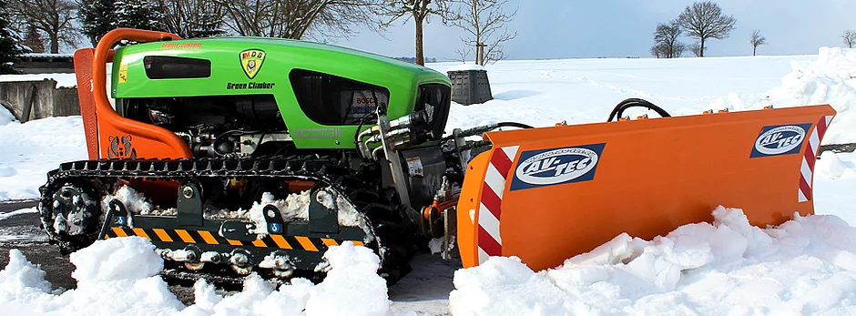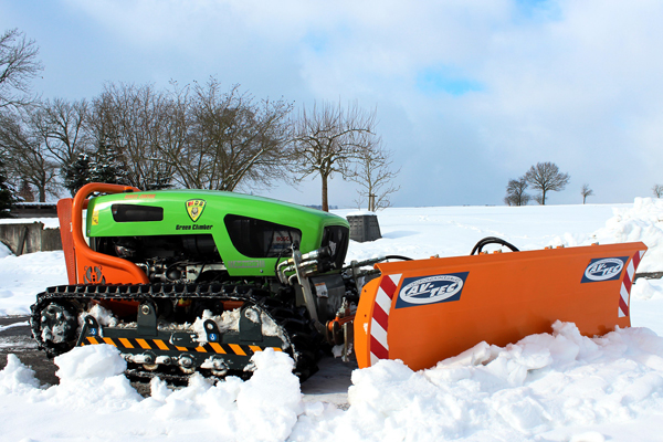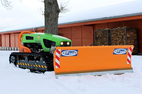 Die etwa 1100 kg schwere funkgesteuerte Raupe kann mit zahlreichen Anbaugeräten ausgestattet werden. Neben Schlegelmulcher, Forstschild, Bodenfräse, Baumstumpffräse und vielen weiteren Geräten, kann die Raupe im Winter jetzt auch mit einer Schneefräse oder einem Schneeräumschild ausgerüstet werden.