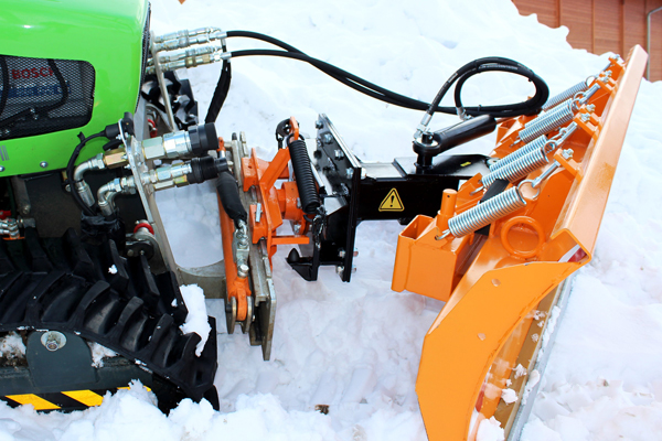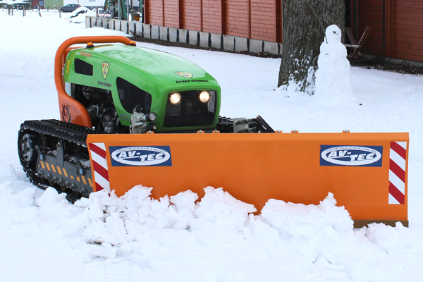 Der Hersteller AV-TEC bietet hier die passende Lösung in Form eines 1,8 m breiten Schneeschilds mit hydraulischer Schwenkung. Das Schneeschild kann individuell ausgestattet werden. Ob Federklappung, Gummi- oder Kunststoffschiene - alles ist möglich.
