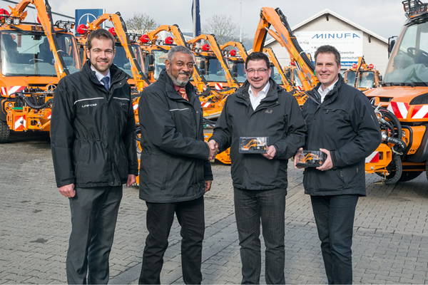 Hessen Mobil, das Verkehrs- und Straßenmanagement des Bundeslandes, nutzt seit Kurzem weitere 15 Mercedes-Benz Unimog für die Unterhaltung von Autobahnen und Straßen. Zwölf neue Unimog U 527 und drei neue Unimog U 423 ergänzen von nun an den Fuhrpark von rund 500 Fahrzeugen, um im Sommer und Winter für optimalen Verkehrsfluss zu sorgen. Die neuen Sonderfahrzeuge für die Straßenunterhaltung wurden von der Unimog-Generalvertretung Minufa an 15 hessische Autobahn- und Straßenmeistereien übergeben.
