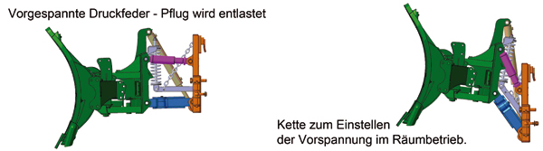 Eine Innovation im Kommunalbereich ist die mechanische Geräteentlastung für Schneepflüge. Eine in den Schneepflug integrierte mechanische Geräteentlastung mit zwei Druckfedern bietet viele Vorteile: