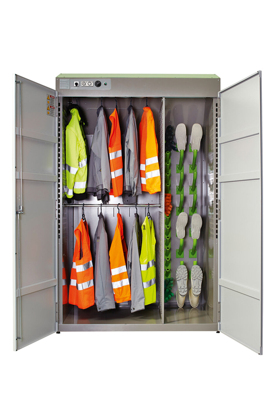 Der große Vorteil der Eco Modelle liegt darin, dass sie im Vergleich zu herkömmlichen Modellen bis zu 60 % weniger Strom benötigen. Ein weiteres großes Plus ist die Unabhängigkeit von der Raumtemperatur: Sie können den Trocknungsschrank in kalten Räumen (bis zu 5 °C) platzieren und die Kleidung wird trotzdem innerhalb von 1 – 4 Stunden getrocknet. Das Kondenswasser wird aus dem Schrank in einen separaten Behälter geleitet und Sie benötigen bei größeren Anlagen keine Abluftvorrichtung.