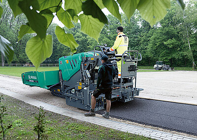Umrahmt war die Technology-Zone von Produktions-Systemen, die das diesjährige Herzstück des Messtandes bildeten. Sie bestehen aus der Verknüpfung von Maschinen, den geeignetsten Anwendungsverfahren und den dazu passenden digitalen Lösungen – umfassen damit vieles, was ein Kunde für die Realisierung eines Bauprojekts benötigt. Acht konkrete Anwendungsbeispiele hatte die Wirtgen Group nach München mitgebracht – eines davon zum Thema temperaturabgesenkter Asphalt, auch als Warmasphalt oder Warm-Mix bekannt. Dabei wurde u. a. gezeigt, wie sich das Material ressourcenschonend herstellen und sicher verarbeiten lässt.