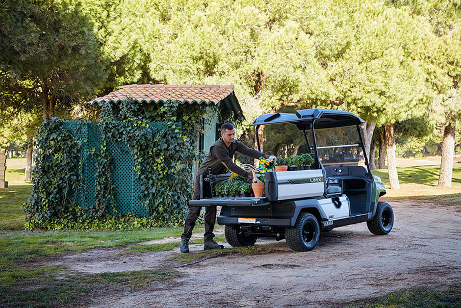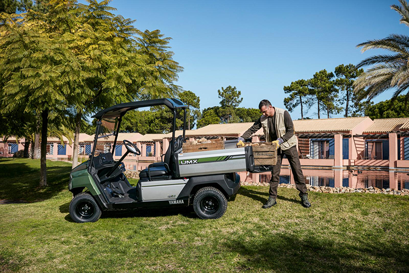 Weiter heißt es, der UMX verfüge über einen leisen und sparsamen 400-cm³-EFI-Einzylindermotor oder, je nach Präferenz, einen geräuscharmem 5,0-kW-Elektromotor. Letzterer eigne sich hervorragend für die Verwendung im Innenbereich. Damit könne das leichte Nutzfahrzeug von Yamaha seine Arbeit erledigen, ohne Gäste oder Kunden zu stören, und lasse sich in einer Vielzahl an Arbeitsplatz-Situationen einsetzen. Hierbei unterstützte die solide Karosserie des UMX, die entwickelt worden sei, um dem Verschleiß durch intensive Nutzung standzuhalten