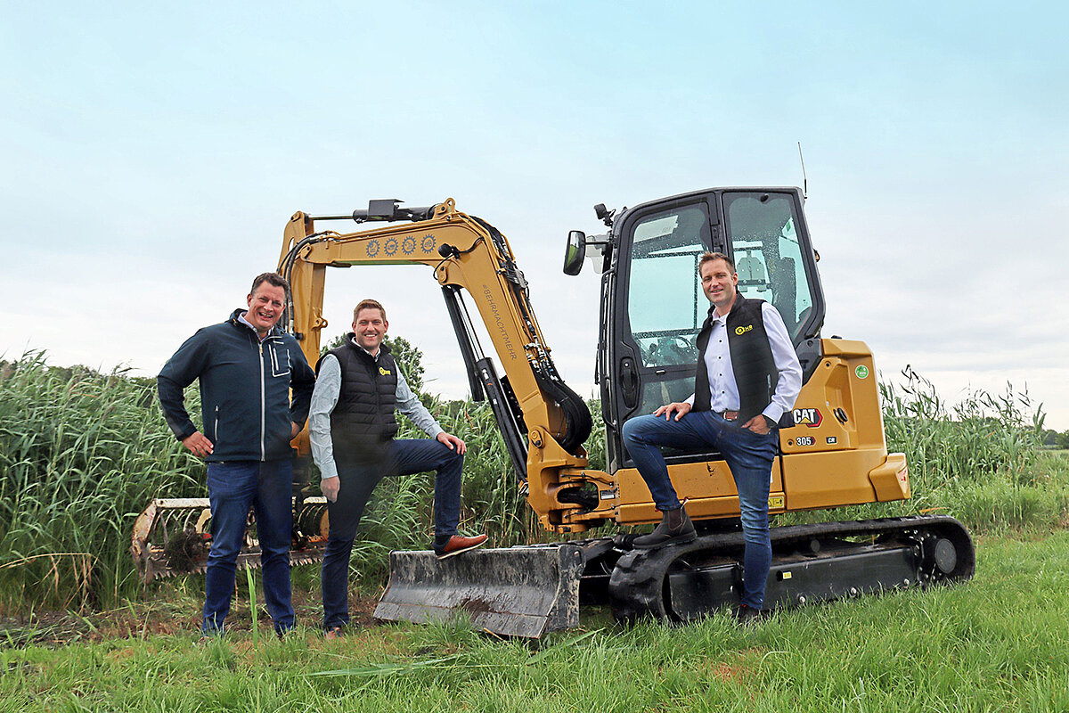 Grundsätzlich gilt für die technische Ausrüstung, dass sie flexibel und universell einsetzbar ist – erst das schafft die angestrebte Vielseitigkeit. Hier muss dann etwa ihr Baumaschinenlieferant Zeppelin und die Niederlassung Hamburg, vertreten durch Michael Otto, bei der Ausstattung reagieren. Für Bagger wie einen neuen Cat 323 bedeutet dies, dass er nicht nur Aufgaben im Erdbau, sondern auch im Abbruch übernehmen muss. Daraus folgt für ihn ein geteiltes Abbruchgitter im Verhältnis 70:30 vor der Frontscheibe der Kabine. Außerdem ist auch ein hydraulischer Schnellwechsler ein wesentlicher Bestandteil der Baumaschine, um die große Bandbreite an Anbaugeräten, wie verschiedene Löffel, Scheren, Stemmhämmer, Verdichterplatten oder Mulcher, einsetzen zu können.