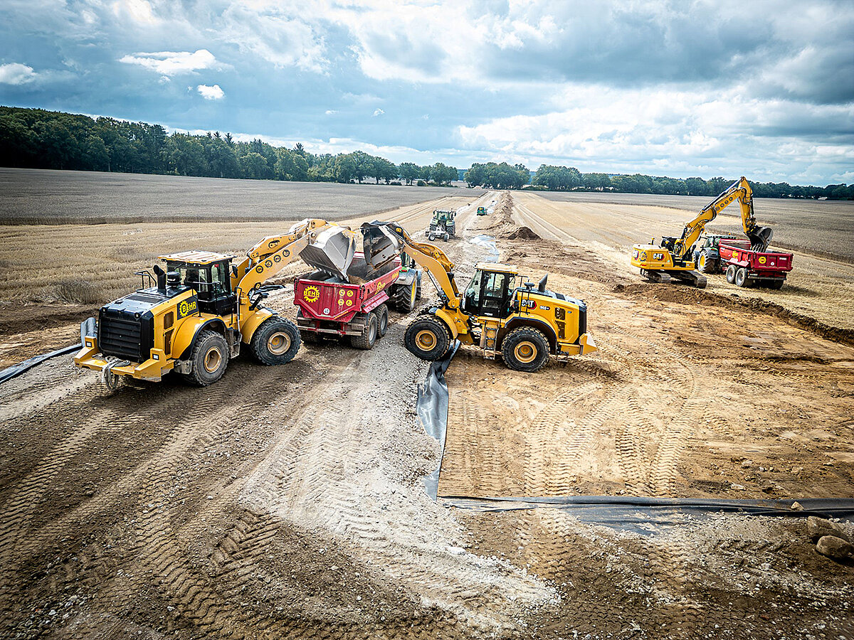 Außerdem werden bei Kettenbaggern Laufwerke mit 60 oder 70 cm Breite gewählt, um hier nicht wesentlich aufgrund der Bodenverhältnisse eingeschränkt zu sein. Bei den zehn Lkw wiederum, die in Umlauf sind, ist Allrad Pflicht. Sie müssen eine hohe Bodenfreiheit und ebenfalls eine hohe Hydraulikleistung für Anbaugeräte aufweisen. Eine Asphalt-/Betonfräse ist ebenfalls vorhanden und kann an die vier eigenen Großschlepper angebaut werden, um alte Wege und Fahrbahnen zu bearbeiten. Auch bis zu zwölf Schlepper mit Muldenkippern gehören zur Ausrüstung, welche auch flexibel mit Kehrbesen oder Wasserwagen auf Baustellen ein wichtiges Bindeglied abbilden. Für Wartung, Instandhaltung und Reparatur gibt es eine eigene Werkstatt. Der immer größere Maschinenpark erfordert Platz: Neu gebaut wird eine Maschinenhalle mit Waschplatz und Tankstelle, die mit einer Photovoltaikanlage ausgestattet wird.