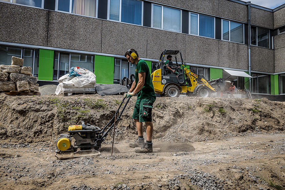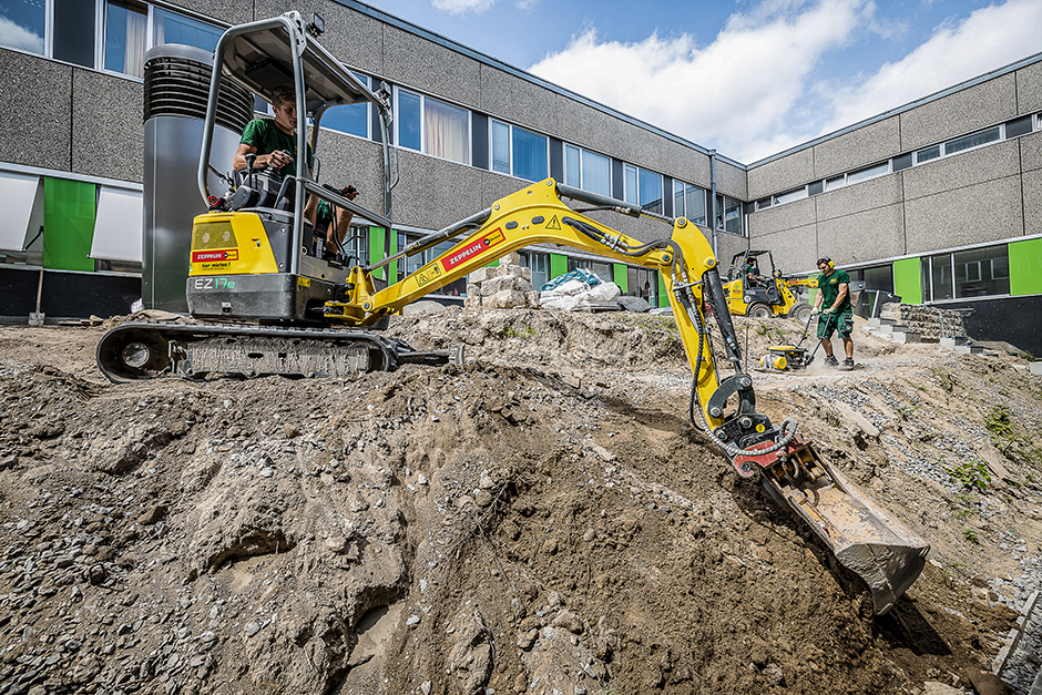 Jan Funke hat Erfahrung mit elektrisch betriebener Technik: „In der Gartenpflege gibt es mit Akku-Rasenmähern, -Heckenscheren oder -Trimmern schon viele emissionsfrei arbeitende Gerätschaften. Mit E-Baumaschinen waren wir allerdings bisher nie in Berührung. Bis jetzt.“ Denn als Bauleiter beim Garten- und Landschaftsbauer Haase mit Sitz im niedersächsischen Bergen verantwortete Funke ein Projekt mit besonderen Anforderungen: die Neugestaltung eines Innenhofs in der Medizinischen Hochschule Hannover. Tatkräftig zur Seite stand dabei der Vermiet- und Baulogistikdienstleister Zeppelin Rental.