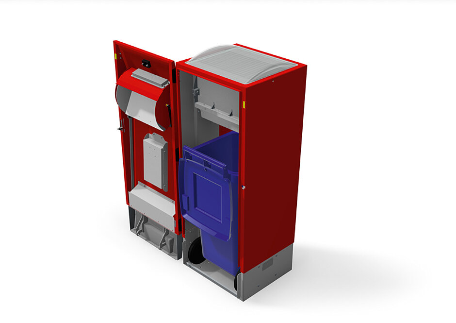 Der moderne Papierkorb wird mit umweltfreundlicher Sonnenenergie und Gel-Batterie betrieben und ist für Leichtverpackungen geeignet. Der Müll wird um ein Fünffaches minimiert. Um den Bürgern den Einwurf des Mülls zu verschönern, ist der Abfalleimer mit Soundeffekten, LED Nachtlicht und Füllstandsanzeige ausgerüstet. Ist der Behälter voll, erfolgt über ein Webportal eine Info zum ansässigen Entsorger oder Bauhof. Deren kleine Müllfahrzeuge sind in den Innenstädten oder Grünanlagen unterwegs. Dadurch können Sammeltouren effizient und umweltfreundlich geplant werden.