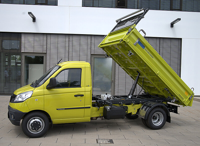 Ein anwesender Händler wies darauf hin, dass die Fahrzeug-Maße für bestimmte Kommunen nicht kompakt genug seien. Auch hier wollen Meiller und Piaggio in Zukunft weitere Fortschritte erzielen. Abschließend gibt’s von den Verantwortlichen noch einen kleinen Ausblick: Zur demopark in zwei Wochen soll ein Dosierschieber für die Meiller-Kipper-Rückwand präsentiert werden, über den z.B. Schubkarren befüllt werden können. Die Option wird wohl ab September dieses Jahres zur Verfügung stehen.