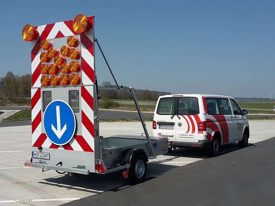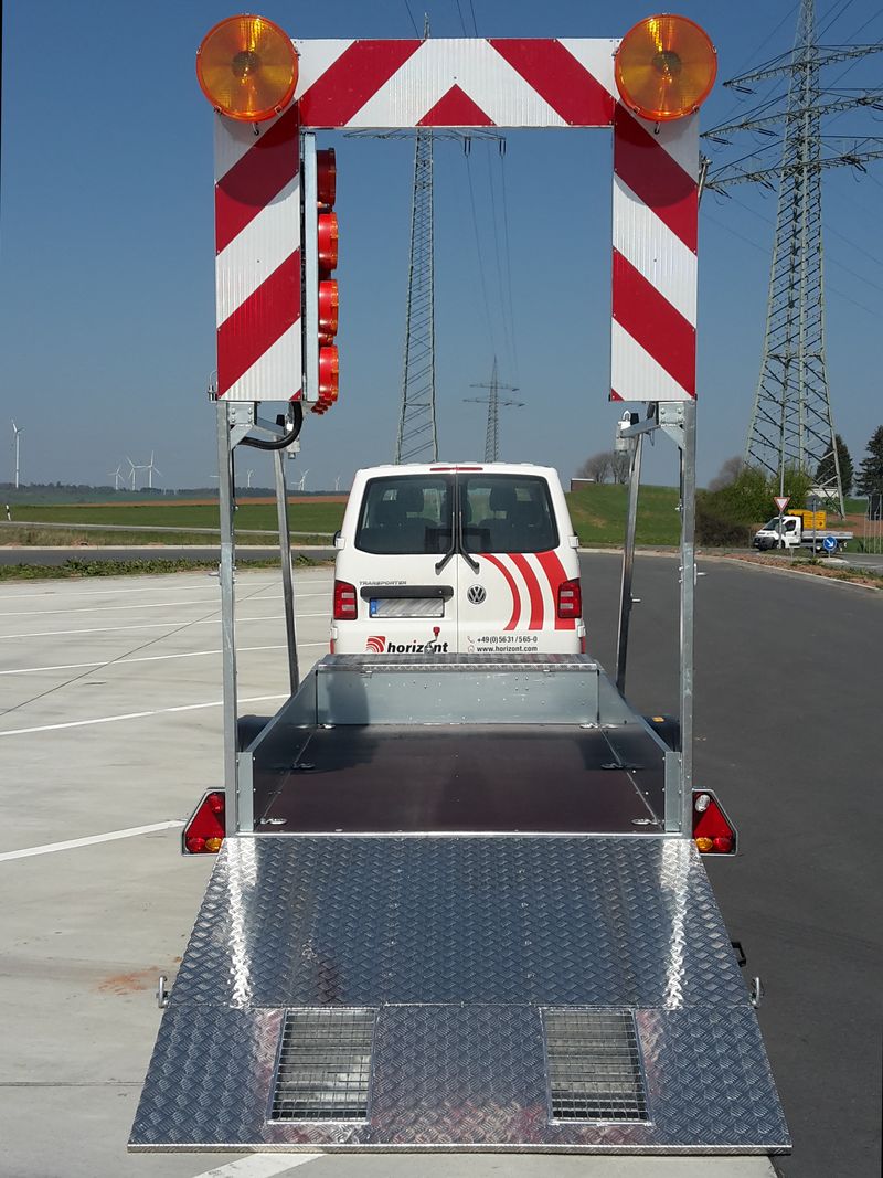Bei allen Arbeiten rund um den Straßenverkehr sollte die Sicherheit der handelnden Personen und der Verkehrsteilnehmer im Vordergrund stehen. Die qualitativ hochwertigen Verkehrssicherungsprodukte der Firma horizont schützen zuverlässig bei allen Arbeiten im Straßenverkehr. Die Fahrbare Absperrtafel FA2 wird auf Kreis-, Bundes- und Landstraßen zur Absicherung von Baustellen, Baumpflegemaßnahmen oder sonstigen Arbeiten rund um den Straßenverkehr eingesetzt. Die FA2 kann in verschiedenen Ausführungen geliefert werden – individuell an die Bedürfnisse des Nutzers angepasst: Ohne Ladefläche, mit kleiner oder großer Ladefläche, mit Handaufrichtung der Obertafel oder elektromotorischer Aufrichtung per Funkfernbedienung.