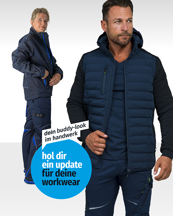 Buddy Workwear steht für moderne, funktionale und stylische Arbeitskleidung, die hält, was sie verspricht – im Handwerk, auf der Baustelle oder im Alltag. Mit innovativen Materialien, perfektem Sitz und einem Look, den man auch nach Feierabend gerne trägt. Wir verbinden Komfort, Qualität und Design zu einer Workwear, die nicht nur schützt, sondern motiviert. Buddy Workwear ist der zuverlässige Partner für alle, die anpacken – fair produziert, langlebig und durchdacht. Deine Arbeitskleidung repräsentiert dein Unternehmen. Sie hinterlässt Eindruck bei deinen Kunden und Partnern. Schlicht: Deine Kleidung ist ein Teil von dir. Grund genug, ihr eine passende Persönlichkeit zu verleihen. Kreiere mit uns deinen eigenen buddy, der zu dir und zu deinem Unternehmen passt. Und das direkt in unserer Manufaktur in Warendorf. Unsere Werte: Nachhaltig: Umweltfreundliche Materialien, Innovation: ständige Weiterentwicklung in Design und Funktion, Kundennähe: Wir hören zu und entwickeln gemeinsam, Zuverlässigkeit: Unsere Produkte halten, was wir versprechen. Buddy Workwear begleitet dich wie ein guter Freund durch den Tag.