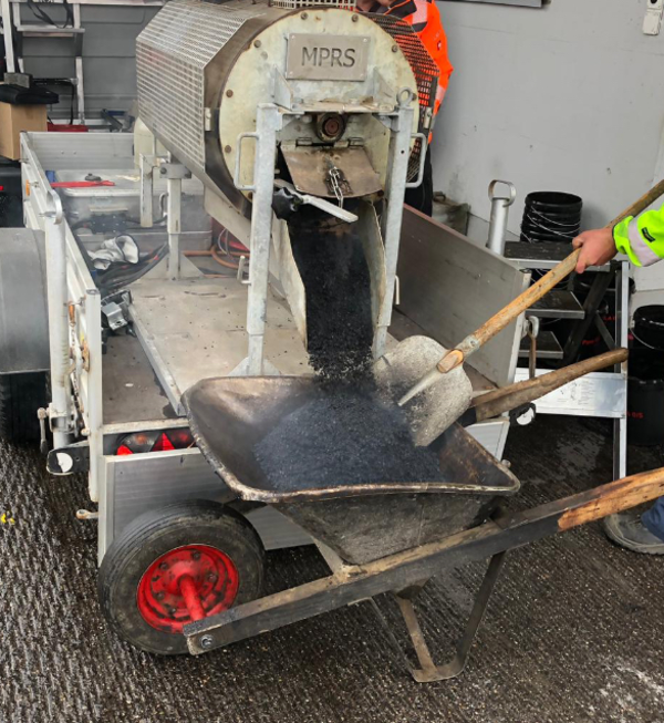 MPRS® ermöglicht eine dauerhafte Instandsetzung von Schadstellen aller Verkehrsflächen z.B. Fugen, Risse, Schachtdeckel, Aufgrabungen, Bohrlöchern etc. mit Warm- und Heißmischgut. Es besteht aus einem lösemittelfreien thermoplastischen Asphaltpellet (PAVE REPAIR) und wird in einer speziellen mobilen Anlage aufbereitet und anschließend heiß verarbeitet.