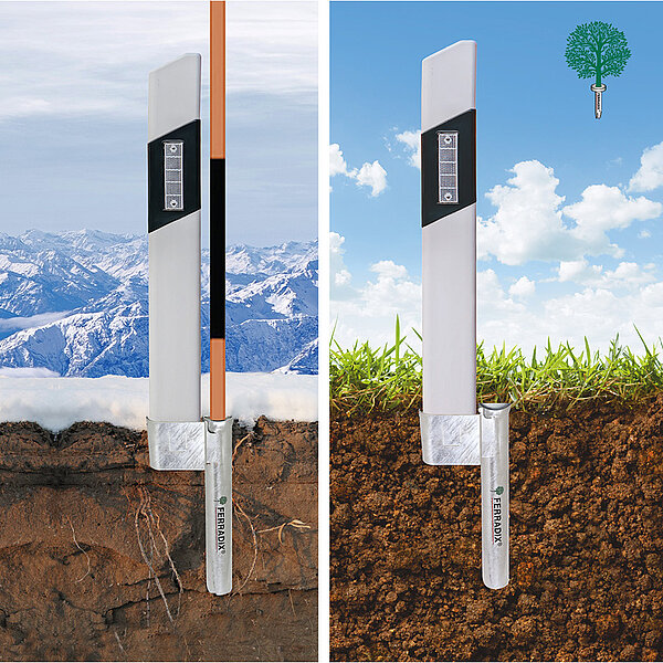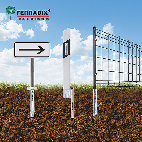 Der Wurzelpfahl FERRADIX® ist ein Bodendübel für die Befestigung von Verkehrsschildern, Stadtmobiliar und Zäunen. Es ist die Profi-Bodenverankerung für Bauhöfe, Straßenmeistereien und im Galabau.