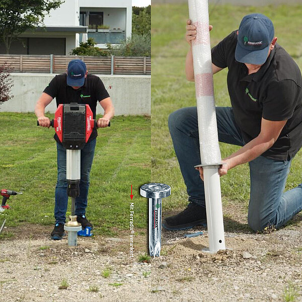 Statt aufwändig Löcher zu graben wird der Wurzelpfahl FERRADIX® maschinell installiert. Der Arbeitskomfort für den Anwender wird somit deutlich erhöht.