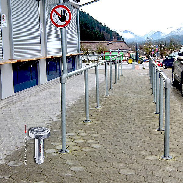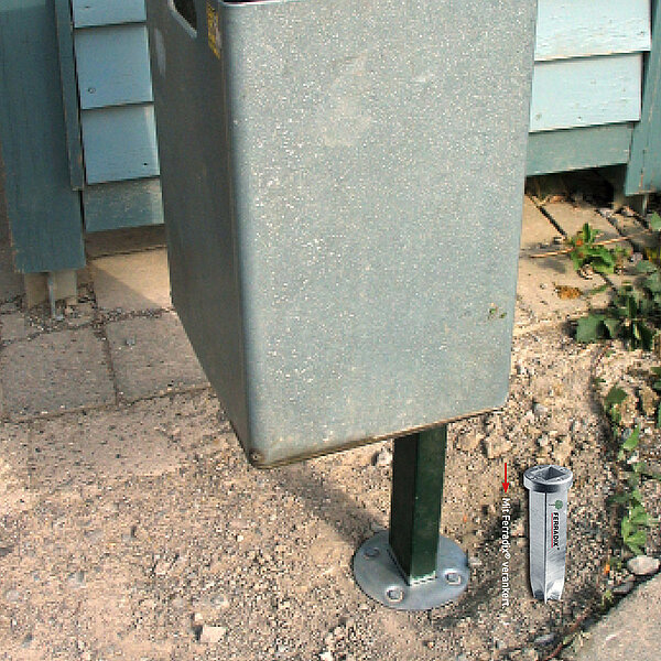 Damit lassen sich schnell und sicher Verkehrsschilder, Leitpfosten, Papierkörbe, Baumschutzbügel, Bänke, Absperrungen, Einzäunungen, Treppengeländer, Unterstände, Fahrradständer und vieles mehr befestigen.