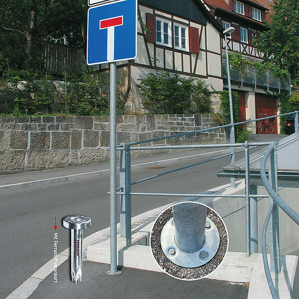 Mit dem Wurzelpfahl FERRADIX® können Straßenschilder und vieles mehr betonfrei,- und somit umweltfreundlich befestigt werden.