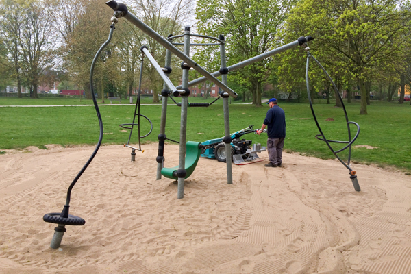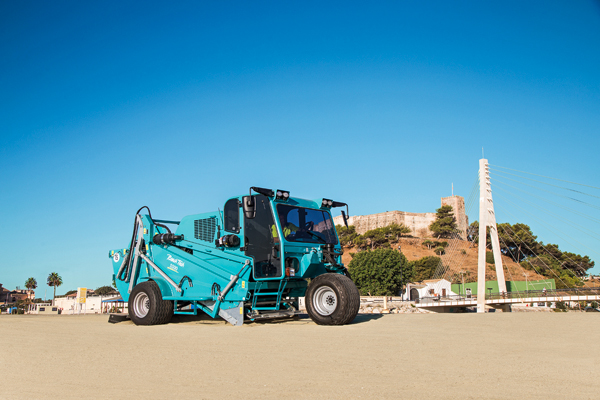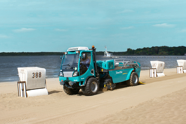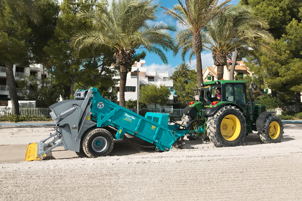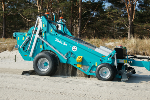 Ein verstellbares Aufnahmeschar wird in den verunreinigten Sand abgelassen, nimmt diesen auf und befördert ihn über ein vibrierendes bzw. oszillierendes Sieb. Durch die Bewegung wird der Müll herausgefiltert und ein in einen Sammelbehälter am hinteren Teil des Fahrzeugs transportiert. Der gereinigte und belüftete Sand fällt zurück auf den Boden. Der Finisher glättet die Oberfläche und hinterlässt ein sauberes und gepflegtes Erscheinungsbild.