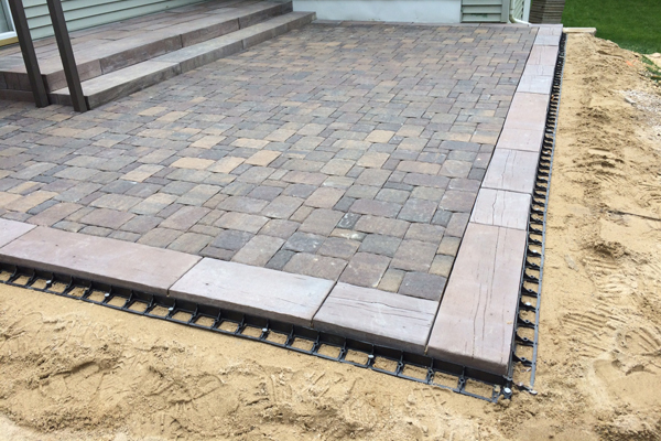 SnapEdge-Kantensicherungssystem: SnapEdge ist ein neues Kantensicherungssystem, mit dem Pflasterflächen einfach einzufassen und zu sichern sind. Das System ersetzt aufwendige Randbefestigungen aus Beton und ermöglicht das Erstellen von Geraden, Innenradien, Außenradien, Innenecken, Außenecken oder sogar kompletten Radien mit nur einem Bauteil. Die flexible Schiene wird einfach mit Erdnägeln befestigt. Das System vermeidet braune Rasenkanten am Rasenrand nach heißen Sommertagen.