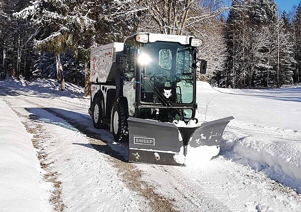 Winter: Kombischneepflug und -kehrwalze, Schneepflug, Keilräumpflug, Schneebürste, Schneefräse, Enteisungssprühanlage, Salzstreuer.
