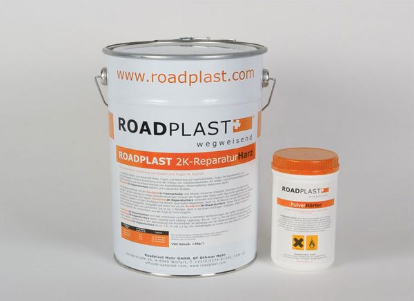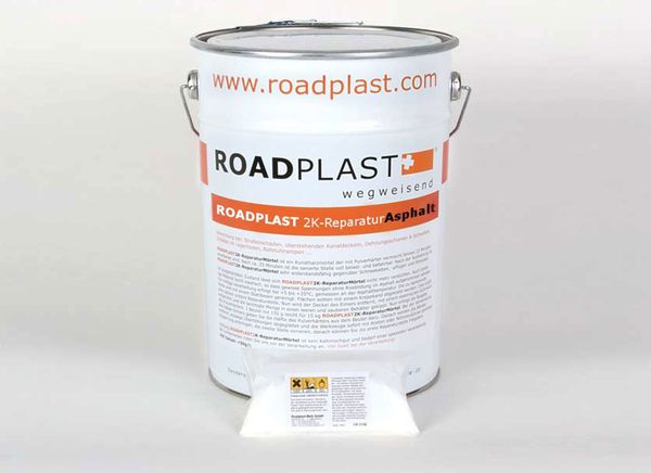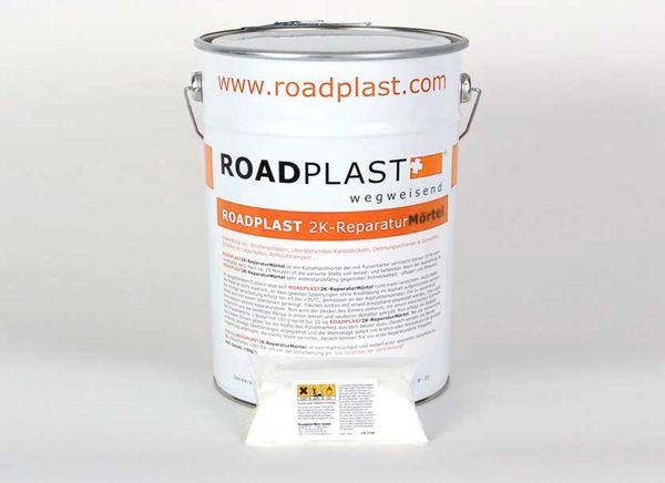 Beschreibung: Der 2K-ReparaturMörtel ist ein gebrauchsfertiges Gemisch auf Kunstharzbasis. Vor der Verarbeitung muss lediglich die zweite Komponente (ROADPLAST PulverHärter)