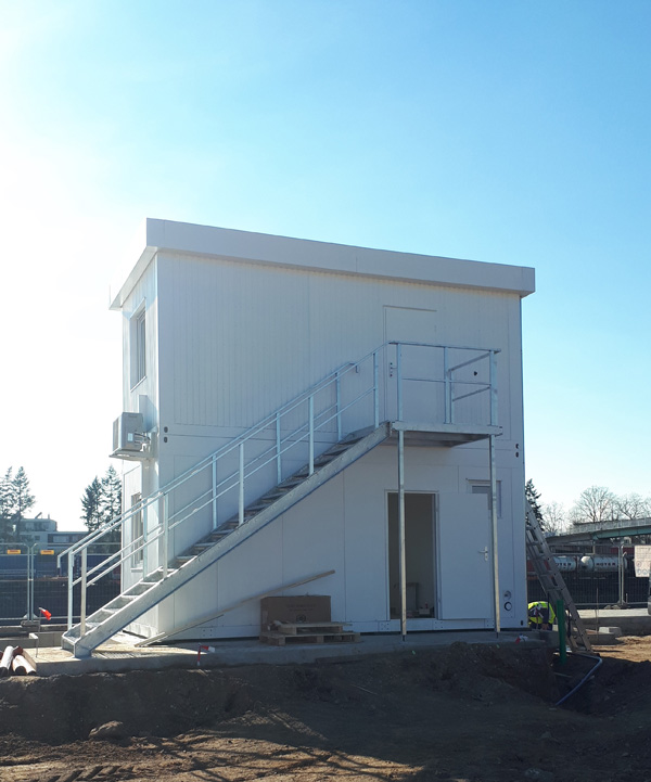 Der große Vorteil unserer Gebäude ist die sehr kurze Montagezeit vor Ort. Für den Kunden beutet dies minimale Einschränkungen durch Absperrungen, Baulärm oder Baustaub.