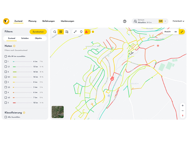Alle Ergebnisse werden übersichtlich im vialytics Web-System am Rechner angezeigt. Über die Planungsansicht lassen sich sowohl langfristige Erhaltungsmaßnahmen als auch kurzfristig Reparaturen zur Unterhaltung organisieren.