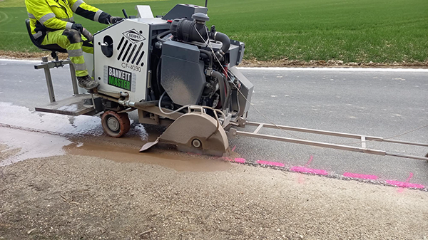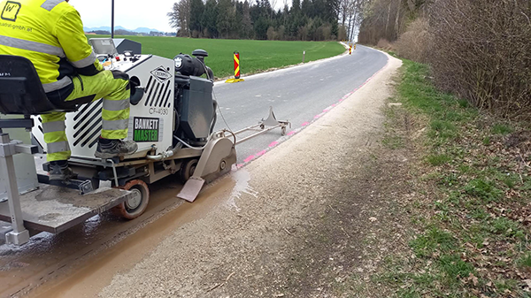 Der neu entwickelte & patentierte BANKETTMASTER arbeitet effizient und schnell – sehr zur Freude der vielen Verkehrsteilnehmer, die auf Schilder wie „Bankett in Arbeit“ gerne verzichten.