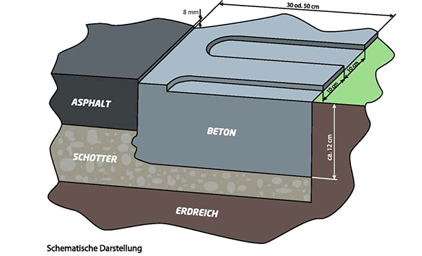 Dank W Quadrat gehört der zeit- und kostenintensive Bankettbau mithilfe von Pflastersteinen und Plattenbelägen nun endlich der Vergangenheit an.