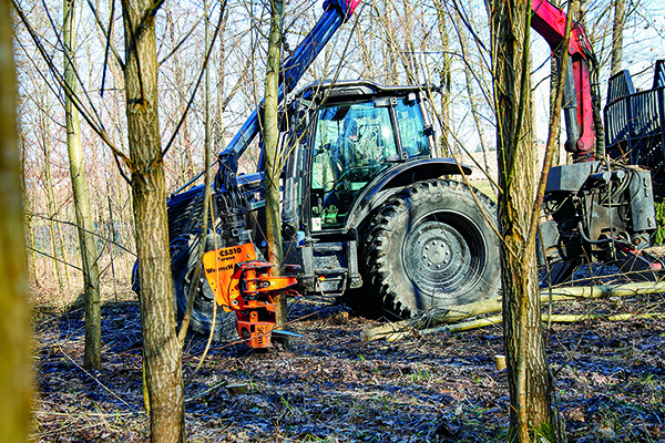 Neben verschiedenen Baumscheren zum einfachen und raschen Entfernen von Bäumen und Buschwerk im Wald, hin zu Roderechen und Wurzelscheren zum Entfernen und Aufarbeiten von Wurzelstöcken, hat das Maschinenbauunternehmen mit den Greifersägen der CS-Serie auch in der Sparte der Sicherheitsbaumfällung einiges zu bieten.