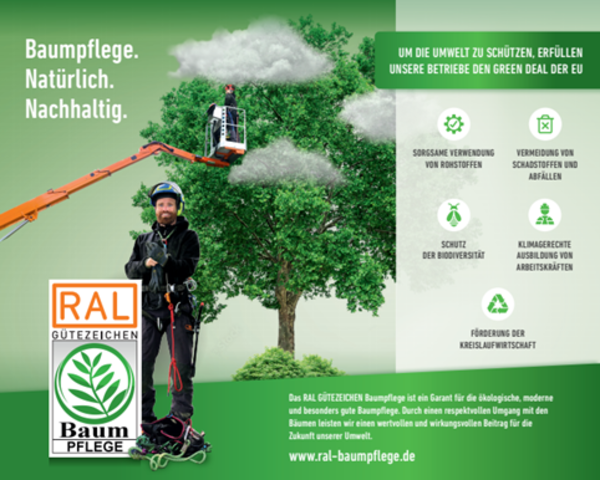 Betriebe, die das RAL Gütezeichen Baumpflege führen dürfen, versprechen anständiges, ehrliches und vorbildliches Verhalten. Das Gütezeichen garantiert dem Auftraggeber, dass der Baumpflegebetrieb für seine Arbeit die Verantwortung übernimmt, ökologisch vorbildlich nach dem aktuellen Stand des Wissens und der Technik arbeitet, die erforderliche Sach- und Fachkenntnis besitzt und sowohl rationell als auch qualitätsbewusst unter Einhaltung der Bestimmungen zur Arbeitssicherheit agiert.
