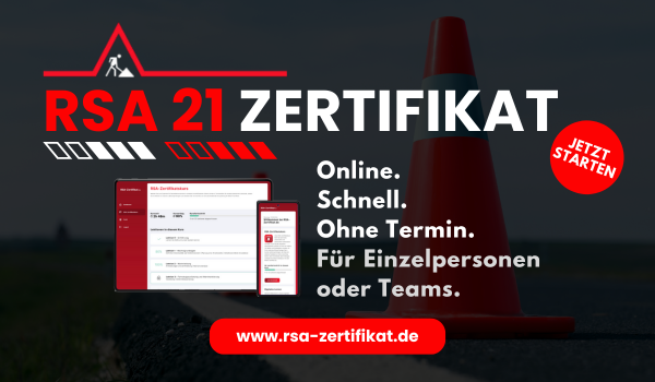 - Arbeitsstellensicherung an öffentl. Straßen nach RSA 21 innerorts-außerorts-Landstraßen (1 Tag)