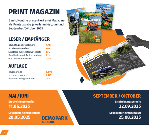 Bereits 2004 als Vorreiter im Special-Interest-Bereich gegründet, hat sich Bauhof-online.de zu einem der führenden Online-Fachmedien für Kommunalmaschinen und Technik in Deutschland, Österreich und der Schweiz entwickelt.
