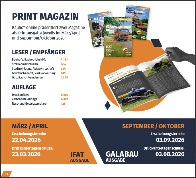 Als kompetentes und verlässliches Fachmedium fungiert Bauhof-online.de als zentrale Informations- und Kommunikationsplattform der Branche – ein Treffpunkt für Hersteller, Händler, Anwender und Entscheider aus Deutschland, Österreich und der Schweiz.