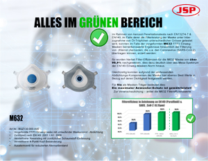 So wurden hierbei Filter-Effizienzen für die M632 Maske von über 99,9% nachgewiesen, dies dazu deutlich über das Mess-Spektrum der EN149 Einweg-Masken-Norm hinaus.